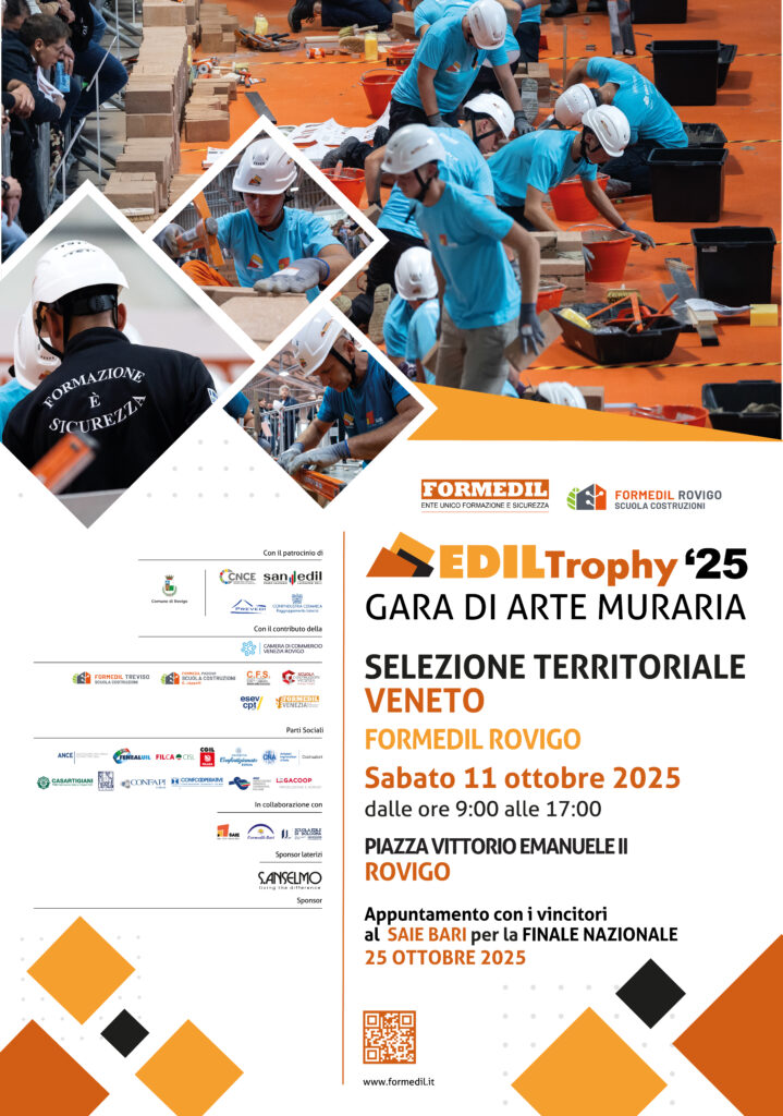 Ma non è tutto perché, l’11 ottobre, saranno disputate nella principale Piazza cittadina anche le selezioni regionali di Ediltrophy 2025, la gara nazionale di arte muraria che vedrà 13 squadre (junior e senior) contendersi il titolo di “Migliore del Veneto” per avere poi accesso diretto alle finali nazionali, organizzate durante il SAIE di Bari dal 23 al 25 ottobre p.v.