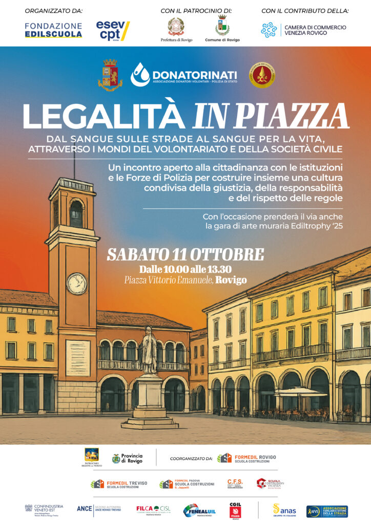 Spazio ai giovani, alla legalità e all’arte muraria, sabato 11 ottobre in Piazza Vittorio Emanuele II doppio appuntamento coorganizzato da Formedil Rovigo.